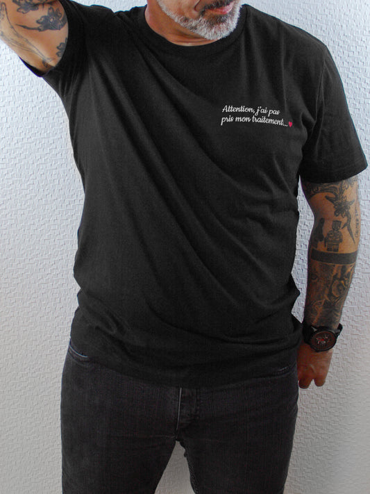 T-shirt bio unisexe : Attention j'ai pas pris mon traitement / Noir ou Bleu