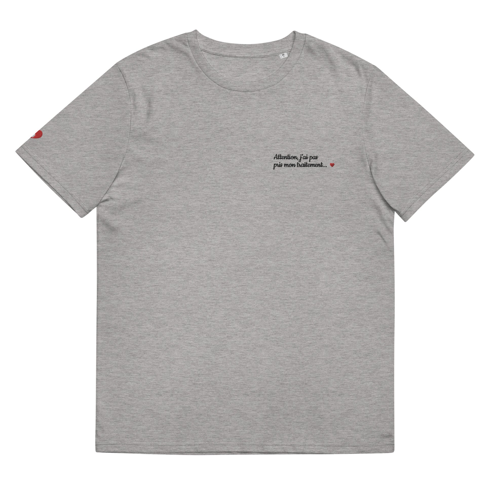 T-shirt bio unisexe : Attention j'ai pas pris mon traitement / Blanc ou Gris