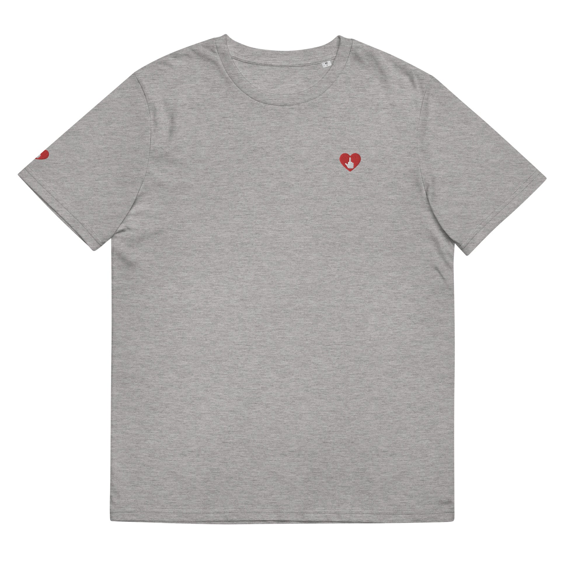 T-shirt bio unisexe : LOGO COEUR DITES-LE AVEC DES FUCKS / Blanc ou Gris