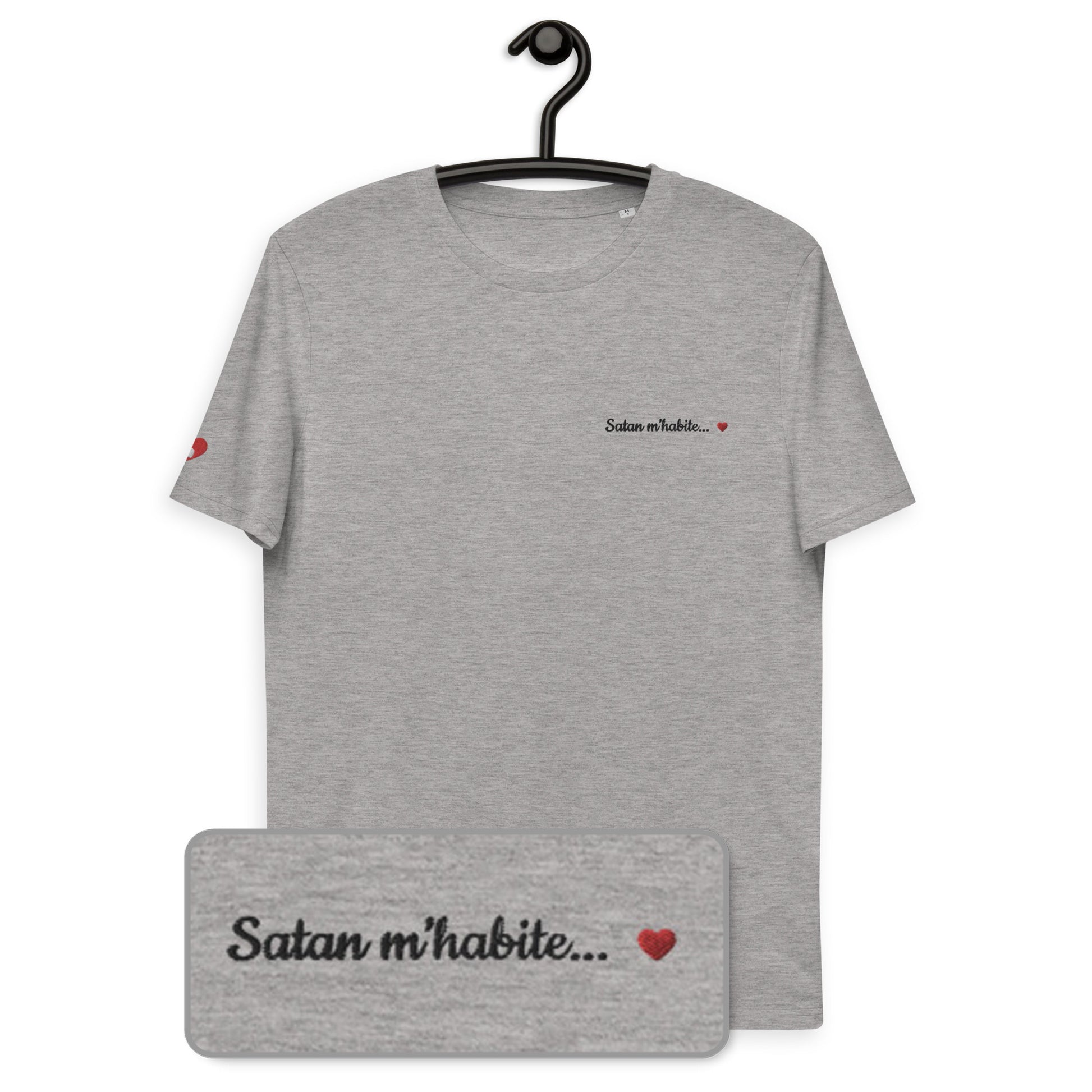 T-shirt bio unisexe : Satan m'habite... / Blanc ou Gris
